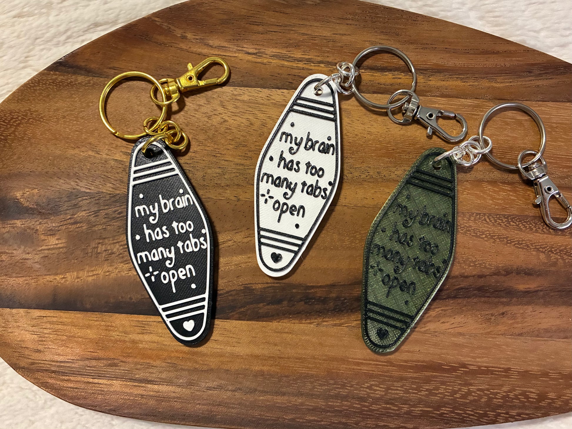 Living life in the digital age means constant pings, ideas, and reminders. Our brutally honest and instantly relatable "My Brain Has Too Many Tabs Open" design is now available in the perfect self-aware Retro Hotel Keychain shape. It’s the ultimate daily reminder that while your mind might be racing, at least you have a great sense of humor about it!