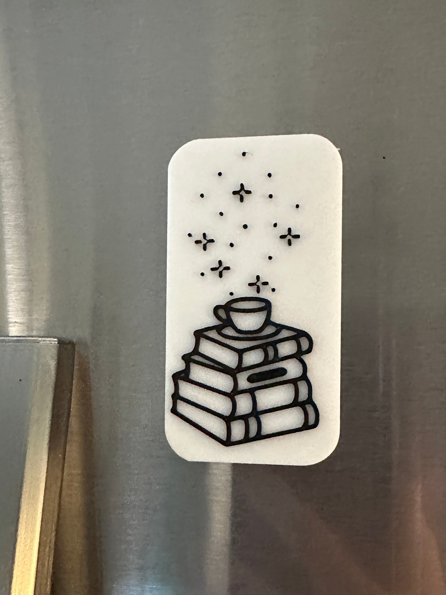 Bring the warmth of the Sip & Read ritual to your home—secure this unique 3D printed magnet today!
